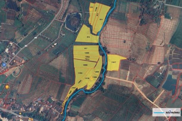 Land for sale 1.3 Mb./Rai Area 48 rai, 900 meters of the land is on the #RiverFront close to the #Alpiine and #Highland golf courses, has a land title deed, #good location next to the #mountains and the #MaeOn River.