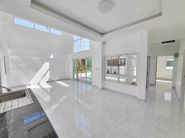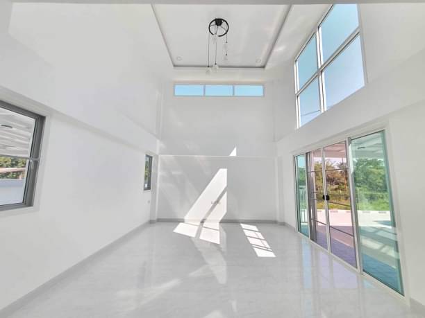 เพดานสูงโปร่ง พร้อมโรงรถปูกระเบื้องเต็มพื้นที่