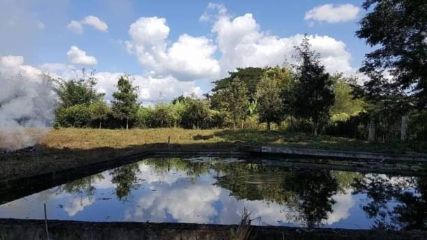 Land next to water, for sale 6.6 Mb. area 3-1-27 sqw. #MaePong #DoiSaket District, can enter and exit 3 routes #Land has been filled in with fence, concrete road, etc. #Back Land next to a spillway and public mine shafts along the line There are two buses passing by.