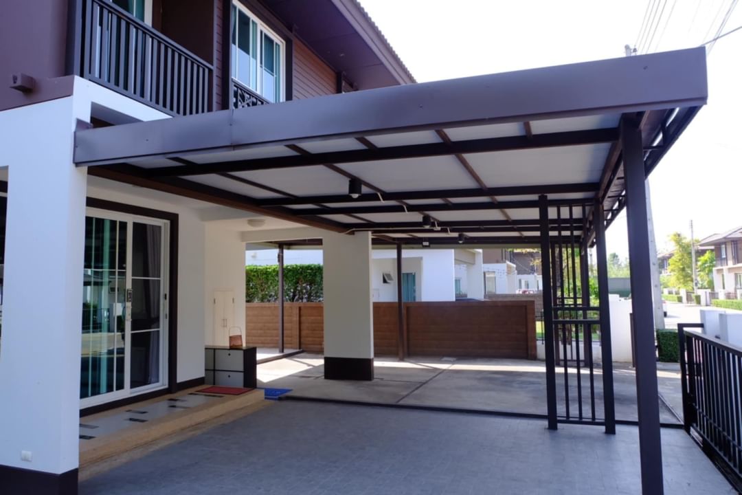ต่อเติมอาคาร โรงรถเรียบร้อยจอดรถได้ 2 คัน