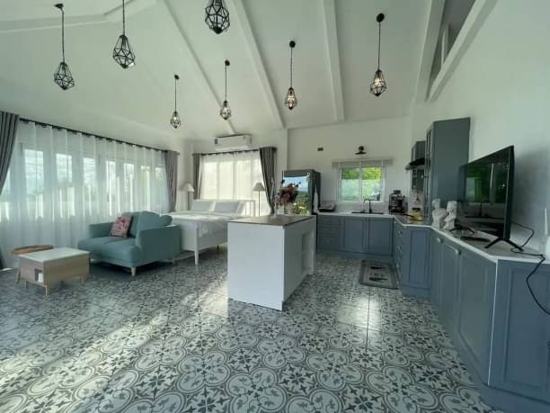 ห้องครัวมีสิ่งอำนวยความสะดวกครบครัน นอกจากนี้ยังมีเครื่องซักผ้า ตู้เย็น มีสมาร์ททีวี