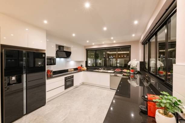 ครัวยุโรปบิ้วอินที่มีอุปกรณ์ครบครันพร้อมเครื่องใช้ไฟฟ้าชั้นนำ