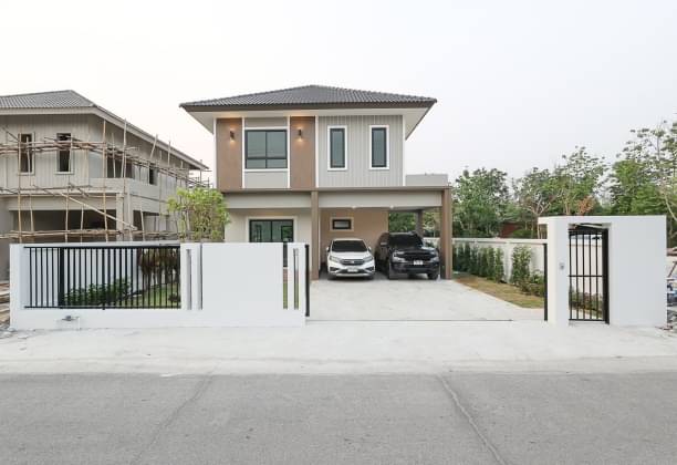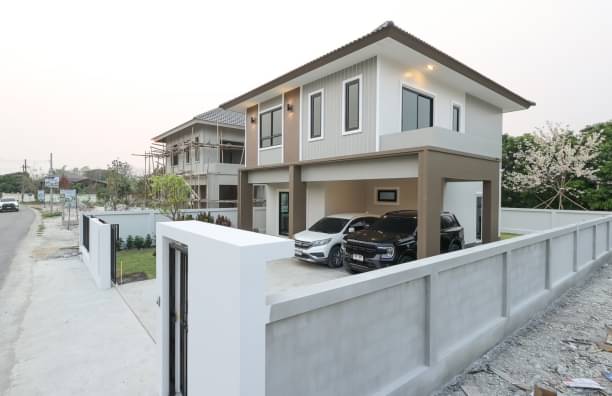 Price starts at 3.29 Mb. (empty house) Large detached house. #Contemporary style On the best location in the area #DoiSaket District There are 7 houses in total 2 styles #Next to the main road, very convenient to travel. Enter the city in just 12 minutes.