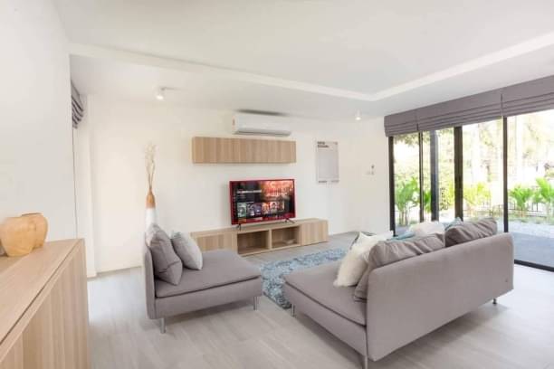 This house has had a thorough renovation and has been stripped back to its structure before new flooring and fittings were installed. The refit has been conducted to a very high standard and a new 4 x 8 meter salt water pool has been installed. Situated in a quiet neighborhood behind the Kad Farang Community Mall and near a large choice of International/Bilingual schools.