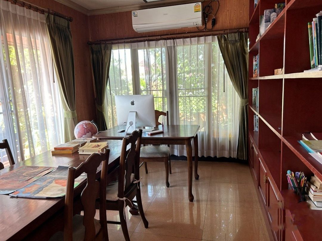 บ้านหลัก: 4 ห้องนอน 5 ห้องน้ำ ห้องทำงาน ห้องสมุด ห้องดูทีวี ห้องนอนใหญ่มีห้องทำงานส่วนตัวและระเบียงกว้าง มองเห็นสระว่ายน้ำและดอยสุเทพ