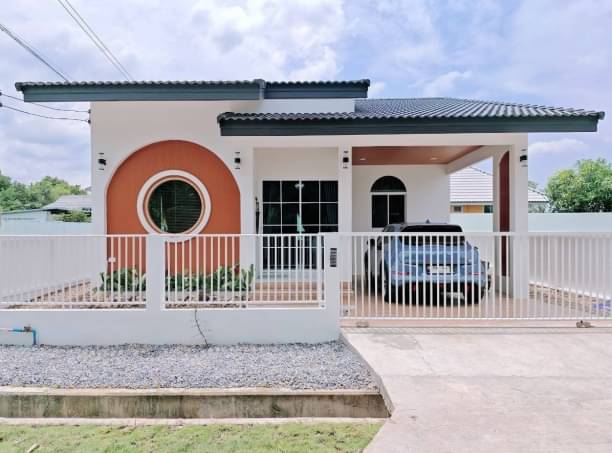 For rent 25,000 baht/month, For sale 3.9 Mb. 96 sqw. #NongHan #SanSai District, one-story house #Muji style #with furniture #ready to move in, spacious house. #Can build an additional swimming pool Near San Sai #Hospital